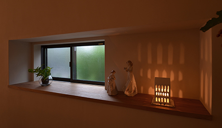 ちょうどこの計画の少し前のリノベ物件(和泉I邸>)を、このお施主様と一緒に見学させていただく機会があったのですが、内装左官仕上げの味わい深さや、簾を挟み込んだ框戸から漏れる光の美しさなどを実感いただき、本計画でも採用することに。ちょっと予算アップにはなってしまいましたが、なかなか言葉や図面、写真だけでは理解するのが難しいことを体感し、ご判断いただく良い機会となりました。
