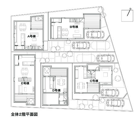 こだわりのデザインといっても、建売住宅にありがちな外装にちょっとタイルを使う?といったぱっと見のことではなく、空間自体の豊かさをじっくりと追求しようというスタンスです。また、 2階リビング+デッキテラスなど結果として各棟共通となった要素もありますが、それぞれの敷地にベストマッチする設計を目指したので、ひとつひとつのプランは当然ばらばら。設計も施工も通常の建売住宅と比べて非常に大変でしたが、その甲斐あって、これまでには無い、高い空間の「質」を持った建売住宅ができたのではないかと思っています。