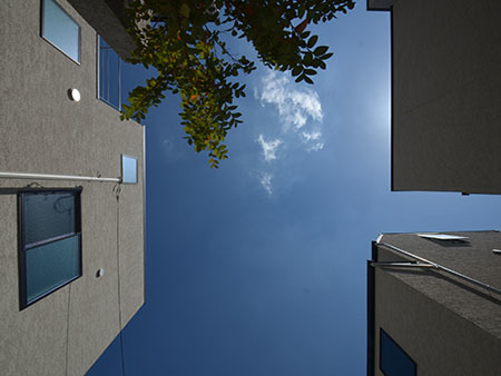 以前、若林M邸を施工いただいたカオル工務店からお声掛けいただいたプロジェクトで、デザインにとことんこだわった建売住宅というお題です。非常に興味深いテーマでしたが、当時は業務が飽和状態であったため、マスタープランとデザイン監修という立場で参加させていただくことになりました。