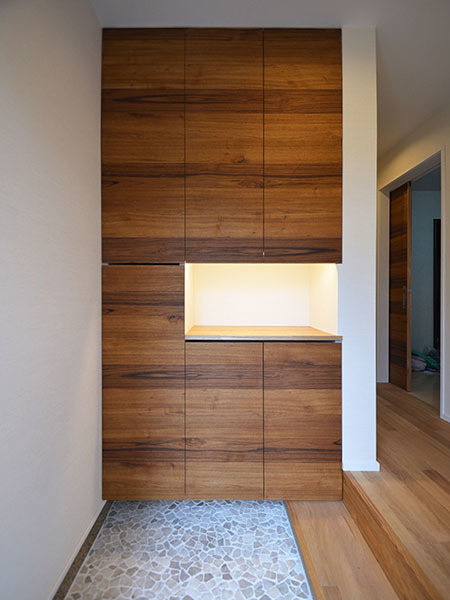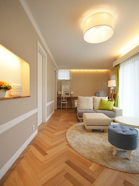 ご希望のテイストはモールディングを多用したクラシカルでホテルライクなイメージ…(またしても汗)。当事務所では経験のないジャンルでしたが、Sさんご自身建築デザインの深い知識がおありで、特にこのスタイルは熟知されていらっしゃいますので、色々と教えてもらいながら進めさせていただきました。