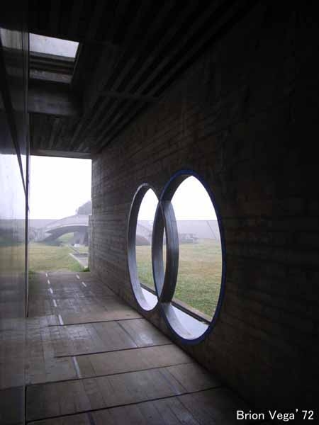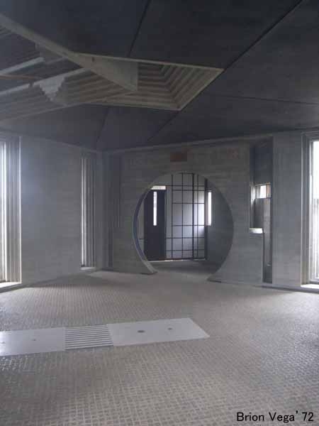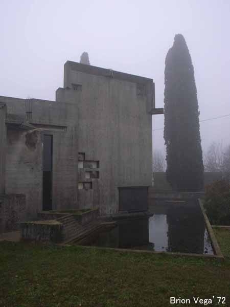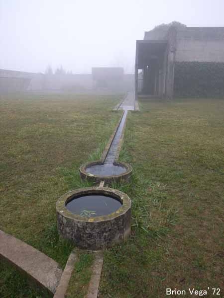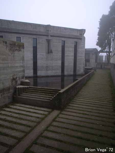 スカルパの数少ない完全設計で、建物の機能の面でも経費の面でもほとんど拘束を受け無かったとのこと。見学していた時間帯が、濃い霧に包まれていたこともあり、非常に神秘的な体験でした。スカルパのいつもの建築言語が全体に織り込まれていますが、ほかの作品とは異なりその濃度が極端に高く過剰とも思えるほど。これまでほとんど増改築の設計しかできなかった鬱憤を、遺作ともいえるこの墓碑建築で爆発させたのか。ちなみにスカルパ自身の墓も墓地の一角にあり、そのデザインは息子トビア・スカルパの手によるものです。