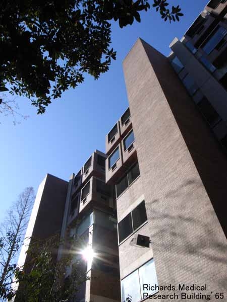 今回の旅行でいくつかのカーンの作品を見て、他のモダニズムの建築家とは根本的なところで違う気がしました。空間の持つ「強さ」が桁違いで、それは自分だけが持っているルール(正方形へのこだわり、サーブド・サーバントに空間を分ける、中間領域を設ける、ふたつの素材だけで空間を構成するなど)があってのことなのだと思いました。ドキュメント映画「マイ・アーキテクト」の中で、カーンについてインタビューされたI・M・ペイは「幾百の凡作を造っても、たった一つでも傑作を造った建築家には負ける。歴史に残るのは後者の建築家なのだから・・・」と言っていました。応用力と順応性が建築を浅はかなものにするという意味?