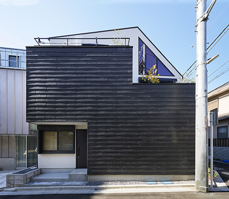 建物密度の高い都会の中でも、この吹抜空間や三角窓を介して、空を感じる生活が営まれることを望んでいます。