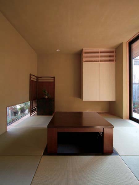 結果的に既存樹木の松のあいだを縫うように建物を配置し、それぞれに特色のある3 つの庭をもつコートハウスに。また、素材的にも年月を重ねるほどに味わいの増すような自然素材を積極的に取り入れました。移動するたびに庭との係わり方が変化し、さまざまな場所に「ほっ」とできる居場所のある住宅となっています。