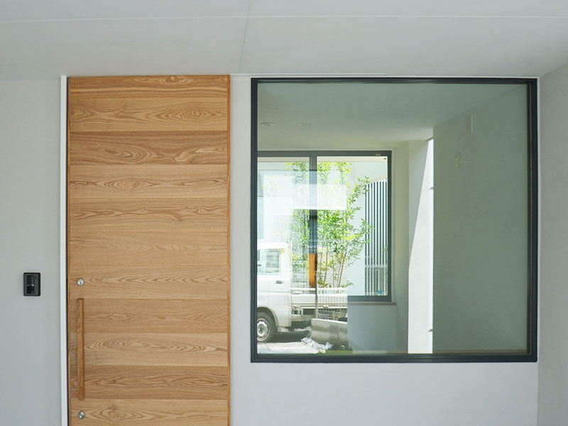 中庭のシンボルツリーを、最後にYさんと共に植栽畑に選びに行った際、なかなか決められないことが多かった?奥様が「この樹がいい!」と即決していただいたことが印象に残ります。(少し予算オーバーでしたが…)このアオハダという樹が2階の目線レベルまで育つ頃には、より良いバランスの住まいとなることでしょう。