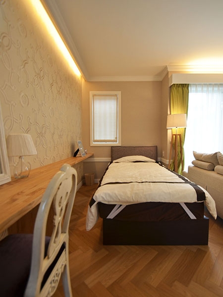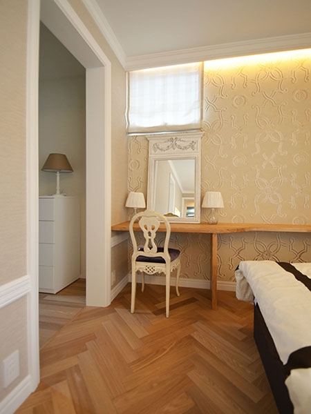 完成写真をご覧ください。Sさんチョイスで家具や備品も揃えていただき、フェミニンな雰囲気で綺麗に仕上がったのではないでしょうか?(Sさん、ご教授ありがとうございました)