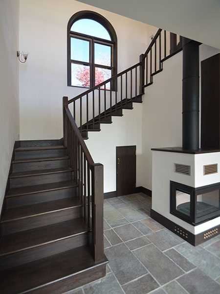 時間は十分にあるプロジェクトだったので、京都の駒井邸をはじめとするヴォーリズ設計のいくつかの住宅をお施主さんと一緒に見学するなどして、じっくりと方向性を絞っていきました。テイスト的にはこの駒井邸に極力近づけることに尽力し、一方プラン的にはごくシンプルな割り付けで、配置中央の回り階段とそこに沿うビルトイン暖炉が唯一の特徴、というところに落ち着きました。非常に素直でひねりの無い間取りとも言えますが、これもまたヴォーリズから影響と言えるでしょう。