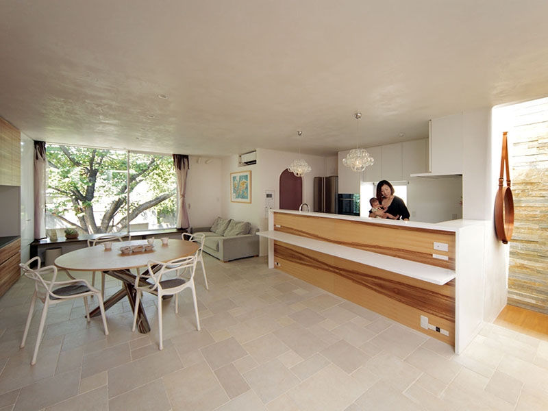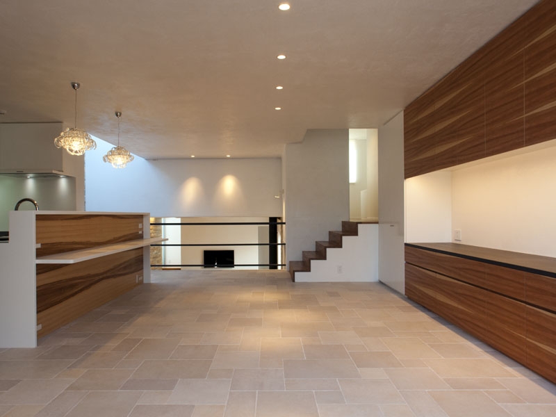その他にもこの3階建ての大きな住宅には、いたるところに空間演出の仕掛けがちりばめられています。各々のコーナーで気持ちの良いシーンが生まれ、それらが連続してひとつのストーリーとなることを目指しています。